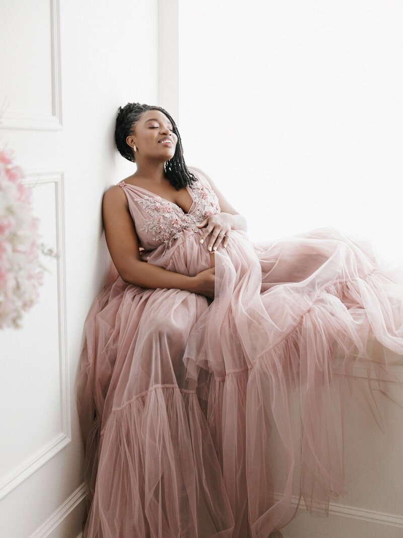 For your signature maternity session, I’ll design custom floral arrangements, flowing fabrics and textiles, or fine-art setups that reflect your unique style.